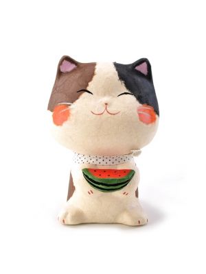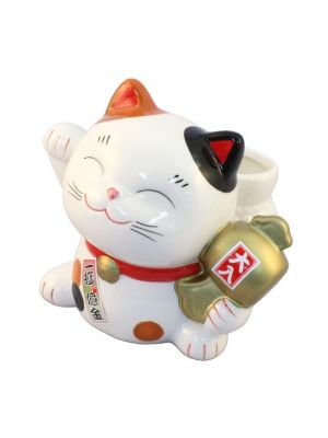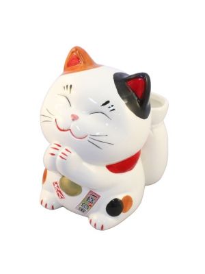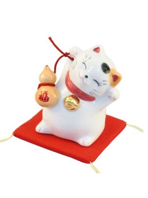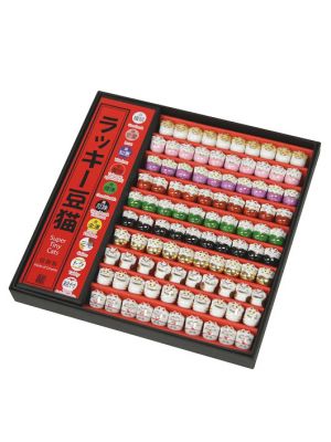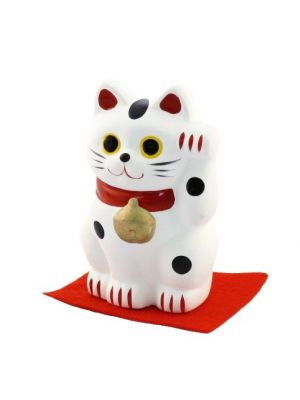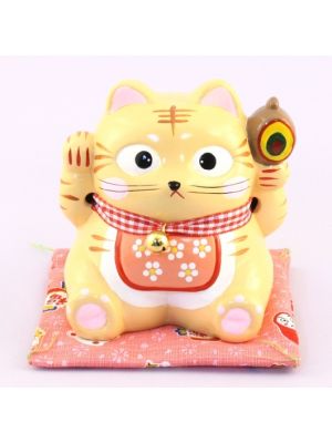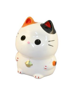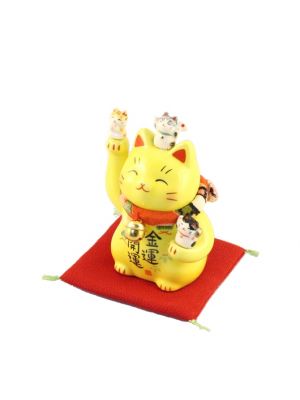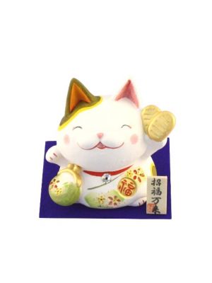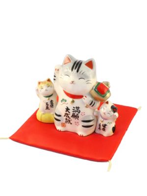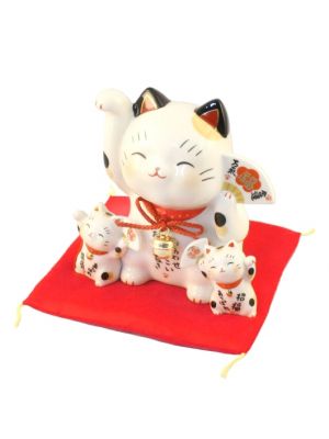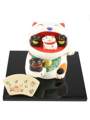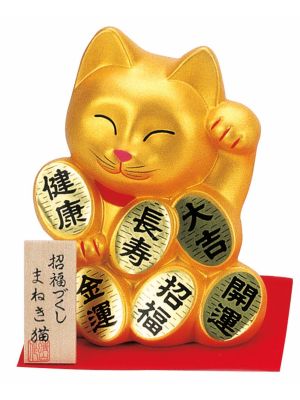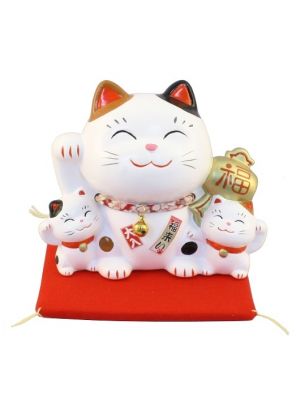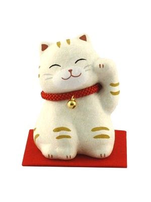 The Lucky Cats (Maneki Neko in Japanese: 招き猫, literally "beckoning cat") is a common Japanese figurine (lucky charm, talisman) which is often believed to bring good luck to the owner. The figurine depicts a cat (traditionally a calico Japanese Bobtail) beckoning with an upright paw, and is usually displayed in shops, restaurants and other businesses.