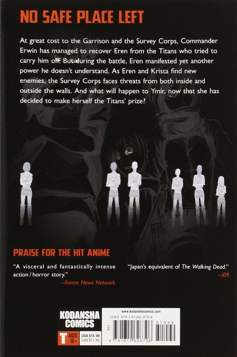At great cost to the Garrison and the Survey Corps, Commander Erwin has managed to recover Eren from the Titans who tried to carry him off. But during the battle, Eren manifested yet another power he doesn't understand. As Eren and Krista find new enemies, the Survey Corps faces threats from both inside and outside the walls. And what will happen to Ymir, now that she has decided to make herself the Titans' prize?
