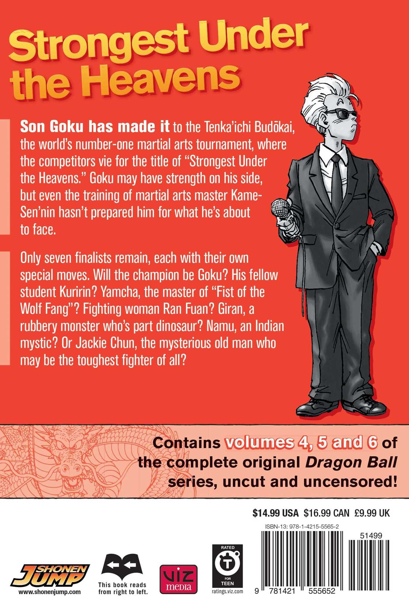 Son Goku has made it to the Tenka'ichi Budokai, the world's numberone martial arts tournament, where the competitors vie for the title of "Strongest Under the Heavens." Goku may have strength on his side, but even the training of martial arts master Kame