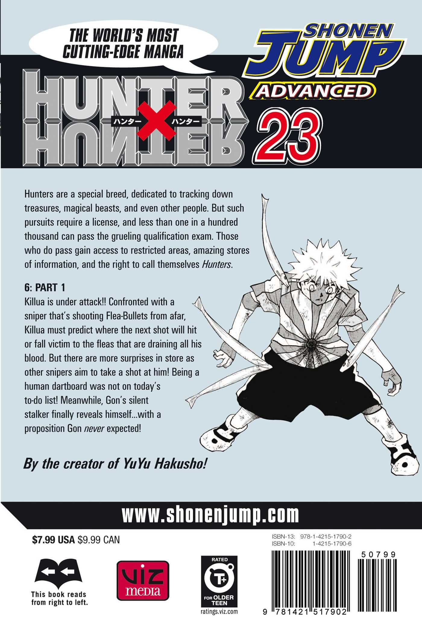 Killua is under attack!! Confronted with a sniper that's shooting Flea-Bullets from afar, Killua must predict where the next shot will hit or fall victim to the fleas that are draining all his blood. But there are more surprises in store as other snipers aim to take a shot at him. Being a human dartboard was not on today's to-do list! Meanwhile, Gon's silent stalker finally reveals himself...with a proposition Gon never expected!