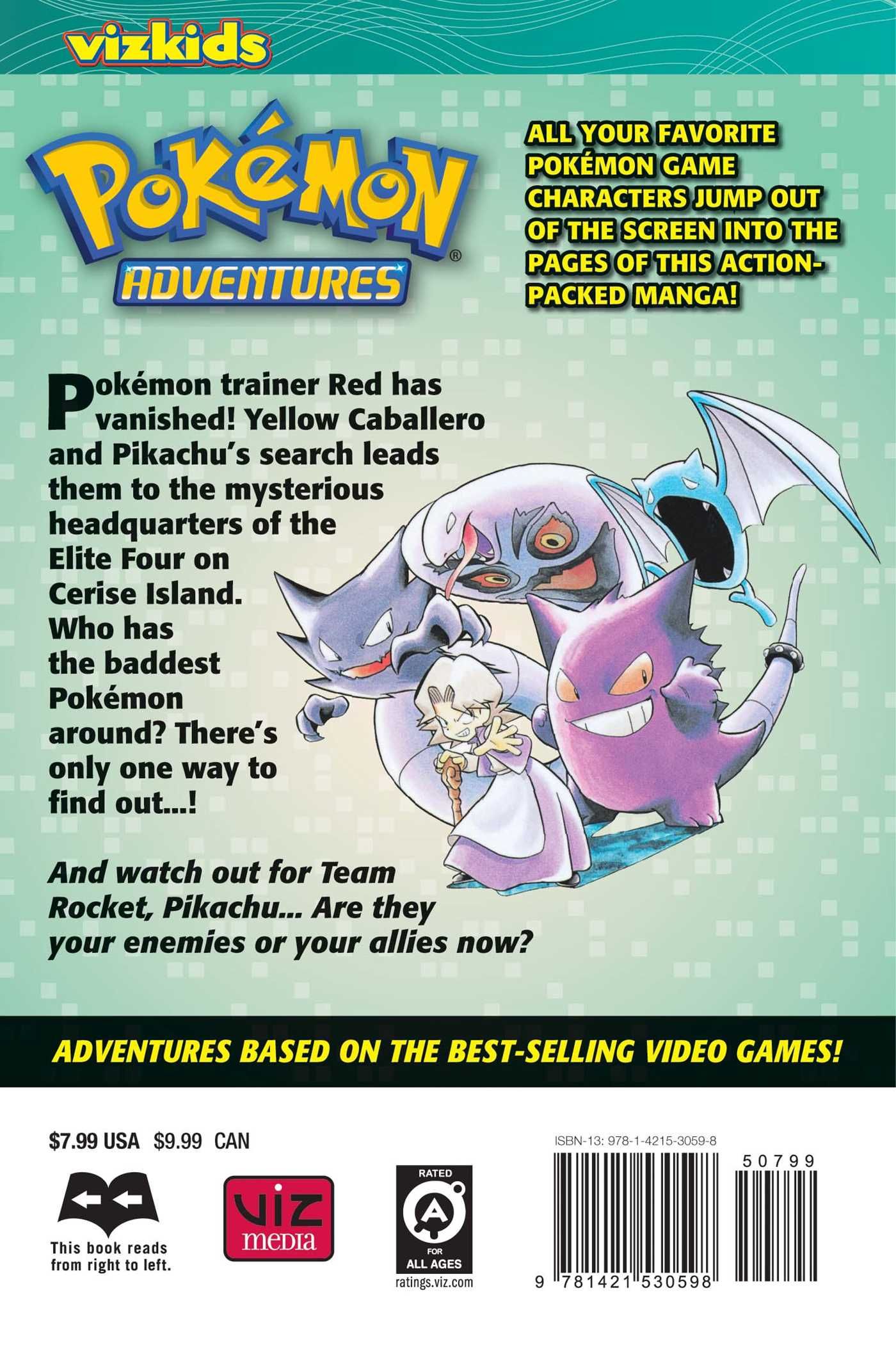 Pokémon trainer Red has vanished! Yellow Caballero and Pikachu's search leads them to the mysterious headquarters of the Elite Four on Cerise Island. Who has the baddest Pokémon around? There's only one way to find out...! And watch out for Team Rocket, Pikachu... Are they your enemies or your allies now?